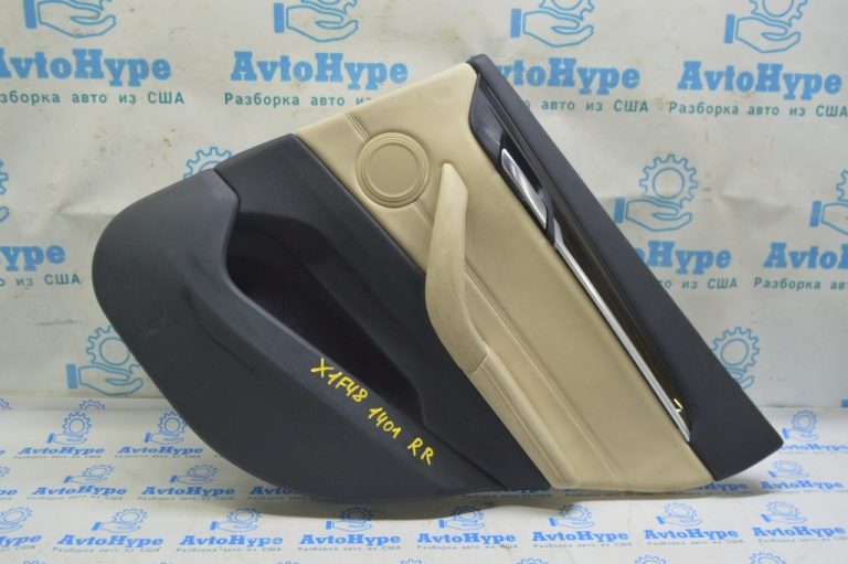 Обшивка двери карточка задняя правая BMW X1 F48 16-22 кожа бежевая с темно-серым oyster/gray, 51427438114