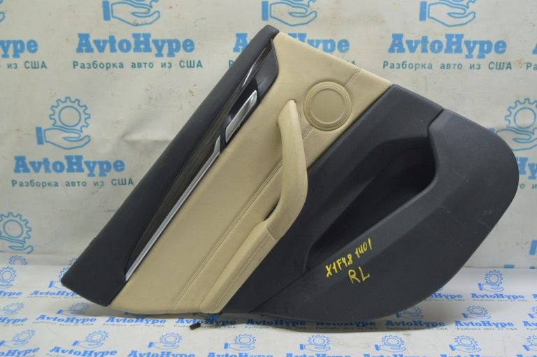 Обшивка двери карточка задняя левая BMW X1 F48 16-22 кожа бежевая с темно-серым oyster/gray, 51427438113