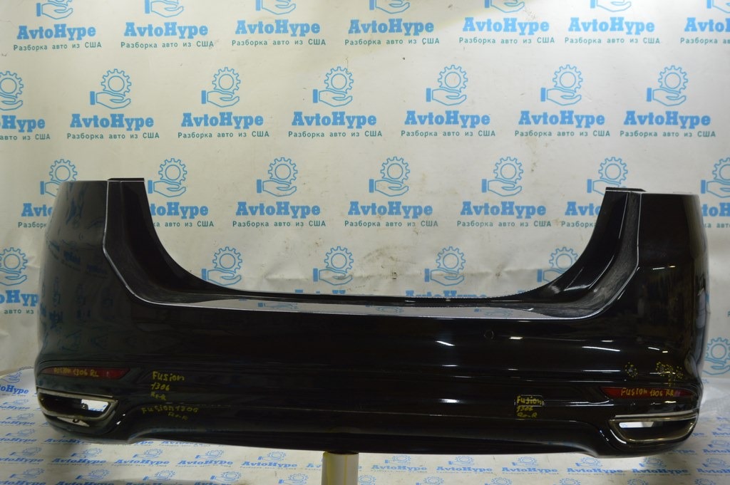 Бампер задний в сборе Ford Fusion mk5 13-18 под 2 трубы, с насадками, с парктроник UH (06) HS7Z-17K835-VFPTM