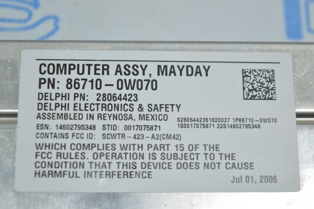 COMMUNICATION MAYDAY CONTROL MODULE Lexus LS460 07-12 rwd (01) (86710-0w070)