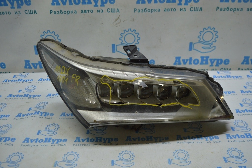 Фара передняя правая голая Acura MDX 14-16 дорест, LED (01) деф. стекла и 1 линзы (33100-TZ5-A01)