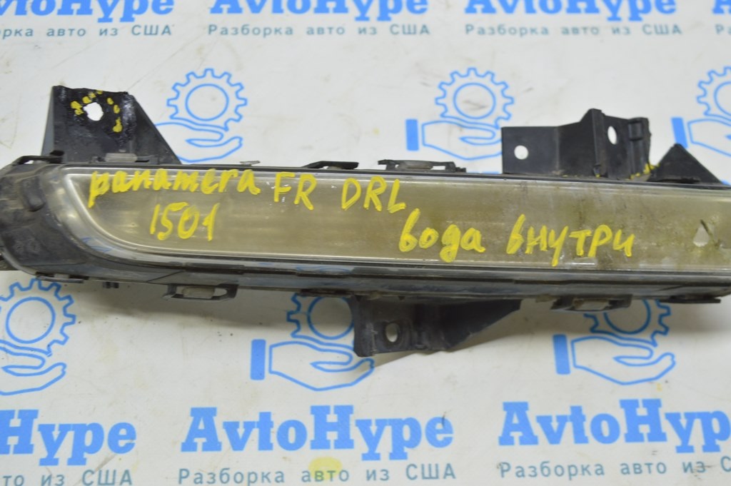 Ходовые огни DRL прав Porsche Panamera 14-16 (01) пробито стекло, деланные, вода внутри (97063108251)