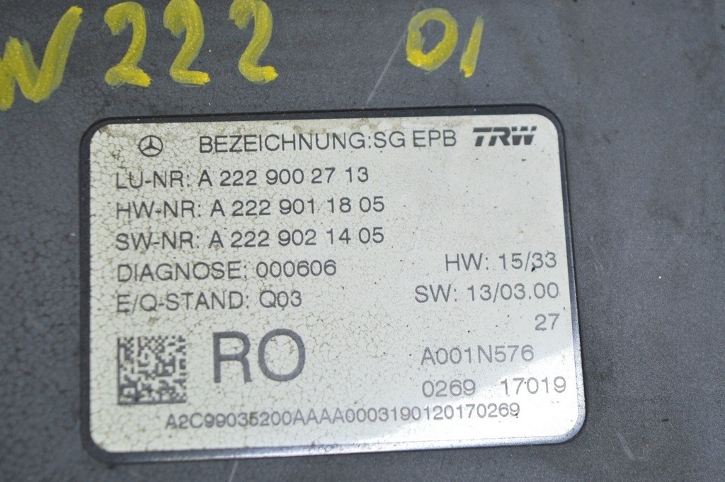 Наименование: Модуль управления стояночным тормозом Mercedes W222 14-22 (01) с фишкой