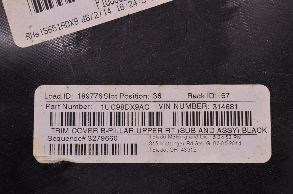 Накладка центральной стойки верхняя (ремень) правая Jeep Cherokee KL 14- черн (6FF58DX9AA)