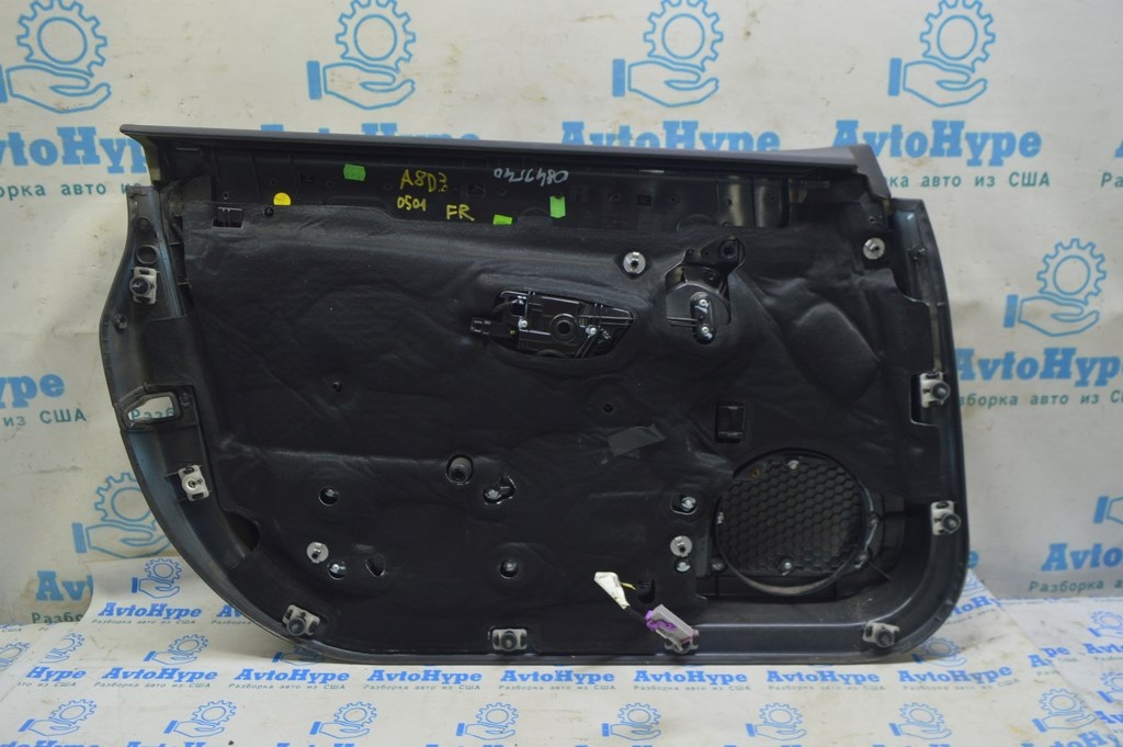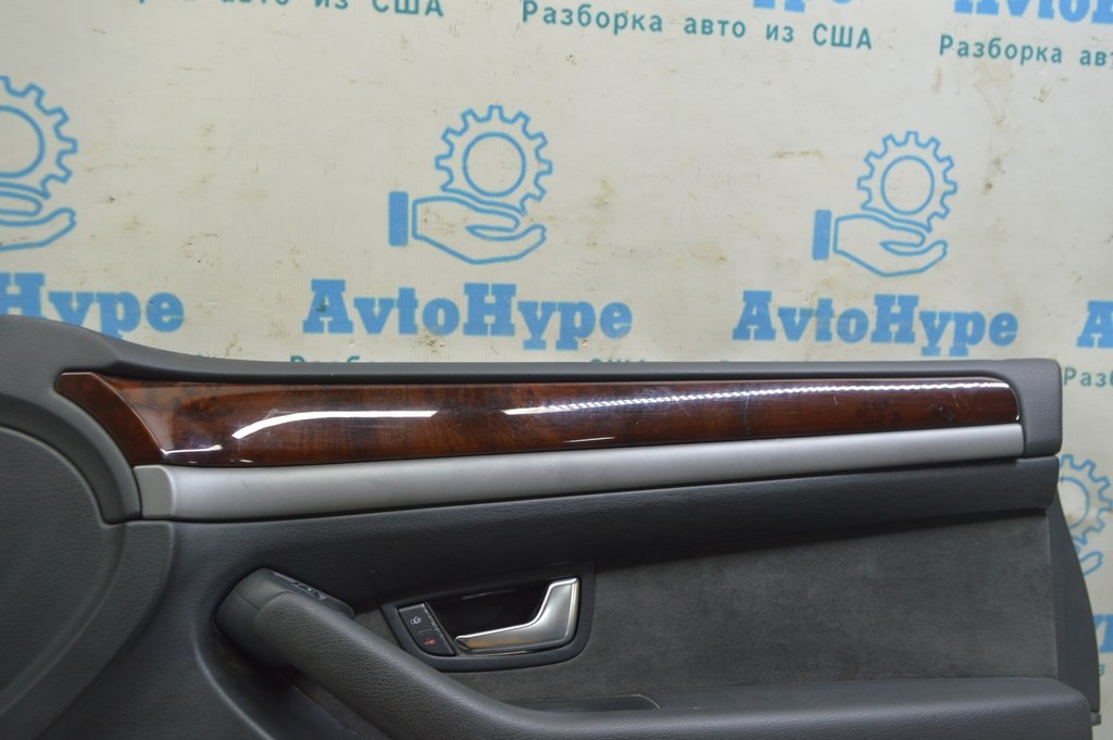 Обшивка двери (карточка) перед прав Audi A8 D3 03-09 черн, кожа,алькантара,дерево, (01) надрыв (4E0867104E QYD)
