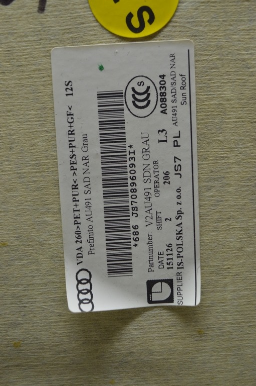 • Наименование: Обшивка потолка Audi A4 B9 17- серая, под люк (01)