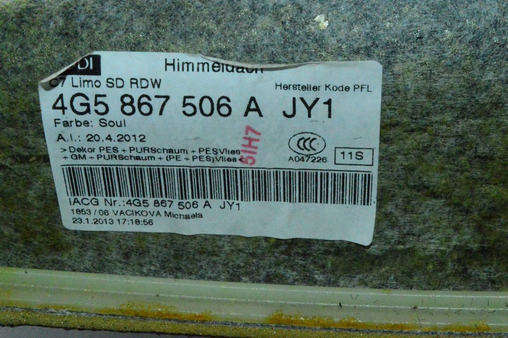 Обшивка потолка Audi A6 C7 12-18 черная (распил) (4G5867506A)