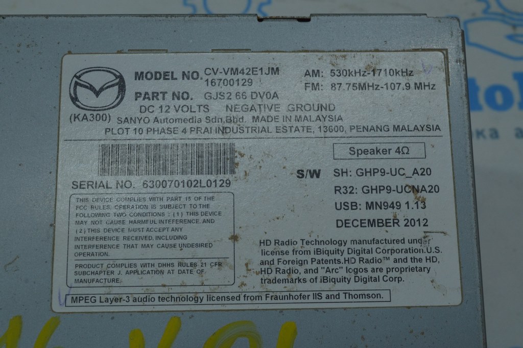 Радио магнитфон монитор проигрыватель Mazda6 13-15 usa (01) (GJS2-66-DV0A)