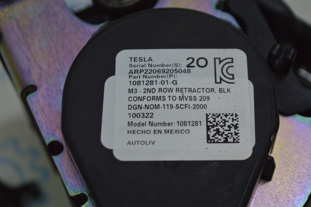 Ремень безопасности задний правый Tesla Model 3 18- чёрн (1081281-01-G)