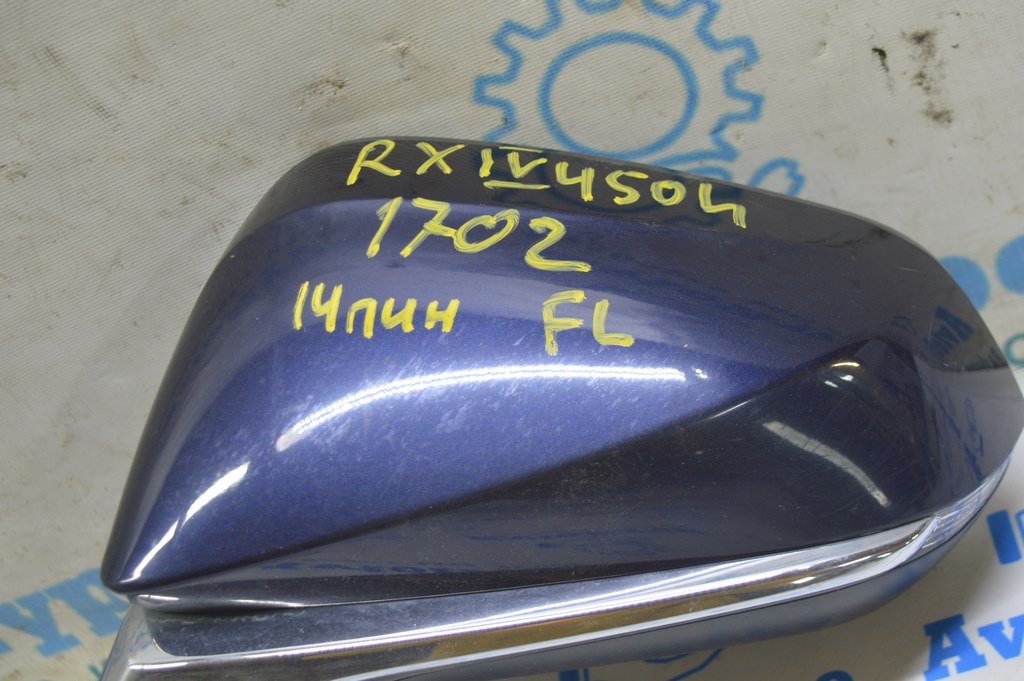 Зеркало боковое левое Lexus RX350 RX450h 16-20 14 пинов, поворотник, подогрев (02) синее 87940-0E230-C0