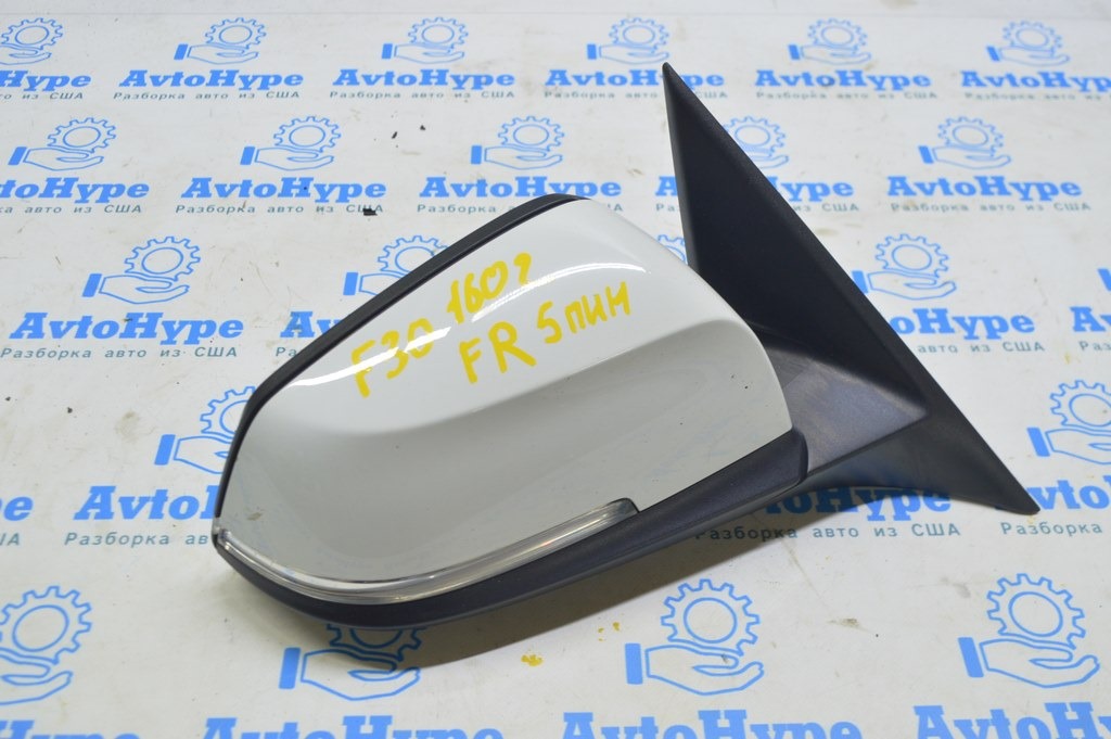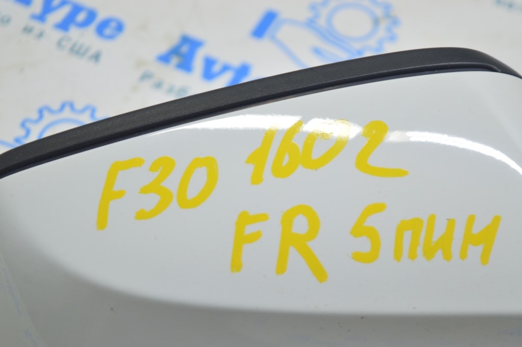 Зеркало боковое правое BMW 3 F30 4d 13-18 usa 5 пинов, крепление мат, поворотник, белое (02) (51167345666)